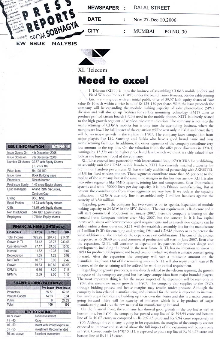 XL Telecom taps market